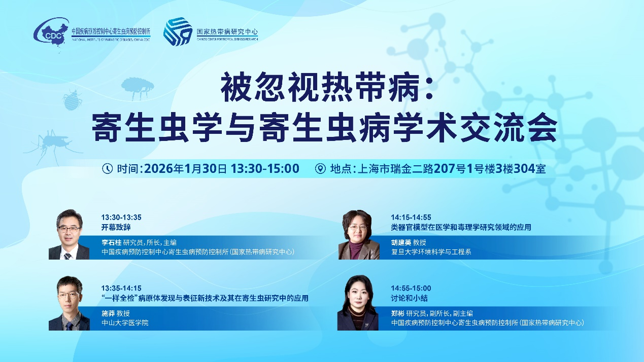 寄生虫病所所长、双寄杂志主编李石柱研究员致开幕辞,他介绍了世界被忽视热带病日成立的背景和意义,中国在被忽视热带病防控方面取得的成绩和未来目标,强调双寄杂志作为国内寄生虫学领域重要的学术期刊,组织本次会议旨在搭建开放、前沿的交流平台,探讨被忽视热带病相关研究技术的应用,促进科研成果向现场防治的转化。会上,中山大学医学院施莽教授对基于宏转录组和全感染组的“一样全检”病原体发现与表征新技术进行了介绍,并分享了其在寻找人类病原体、重要媒介携带病原体、野生鱼类携带病原体、生态学研究等领域的成功应用案例。复旦大学胡建英教授分享了类器官技术在医学和环境毒理领域的研究应用,指出类器官是当前大力推广替代动物实验的热点研究之一,并分享了其在环境毒理因子鉴别的成功案例。最后,郑彬副所长作总结,寄生虫病和热带病的防治离不开科学创新的支撑,希望各领域专家能够加强交流与合作,利用创新技术推动全国乃至全球被忽视热带病防控事业的进步。